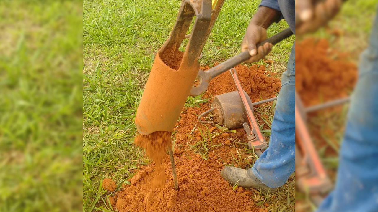 A sondagem à trado, os trados cavadeira tem cerca de 5, 10, 15cm de diâmetro e são usados para estudos de ocorrências de mate...